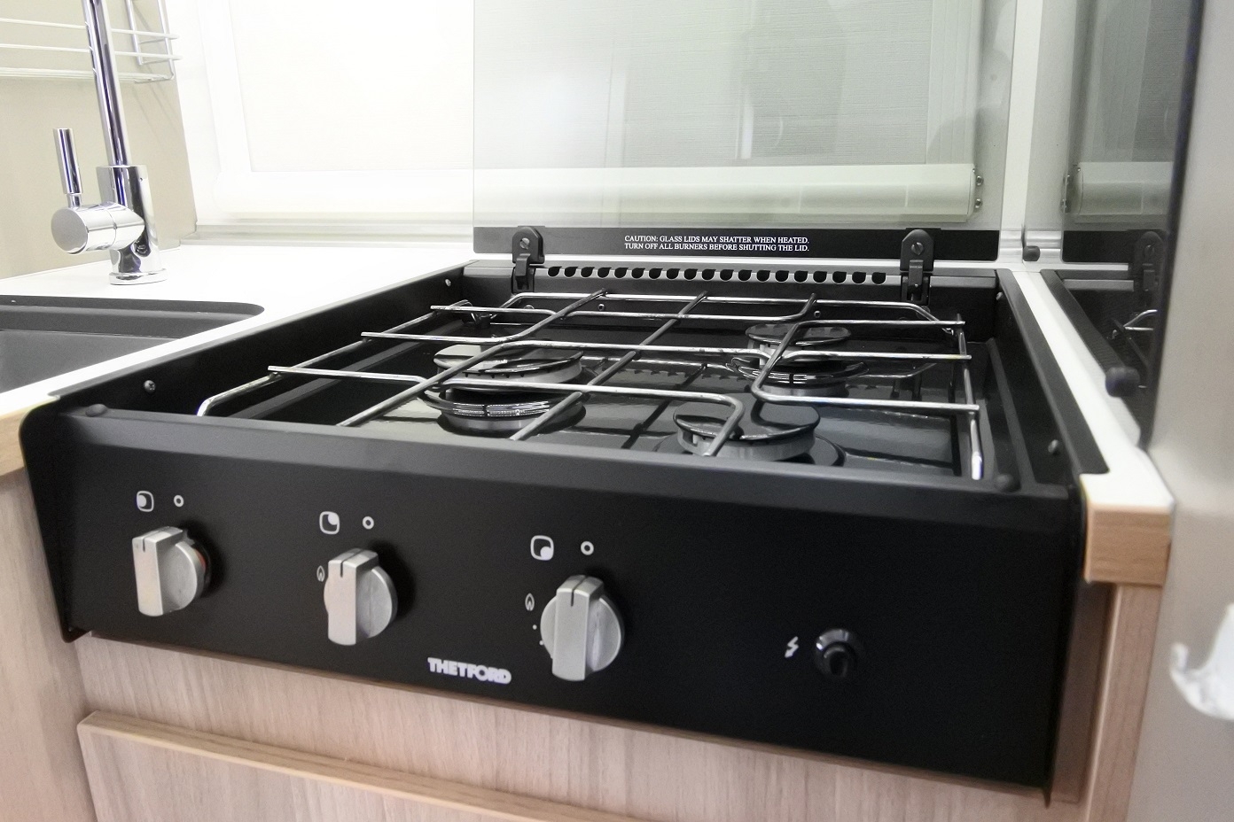 : GASCOMFORT 3-PITS, RVS MET ELEKTRISCHE ONTSTEKING EN GLAZEN AFDEKKING